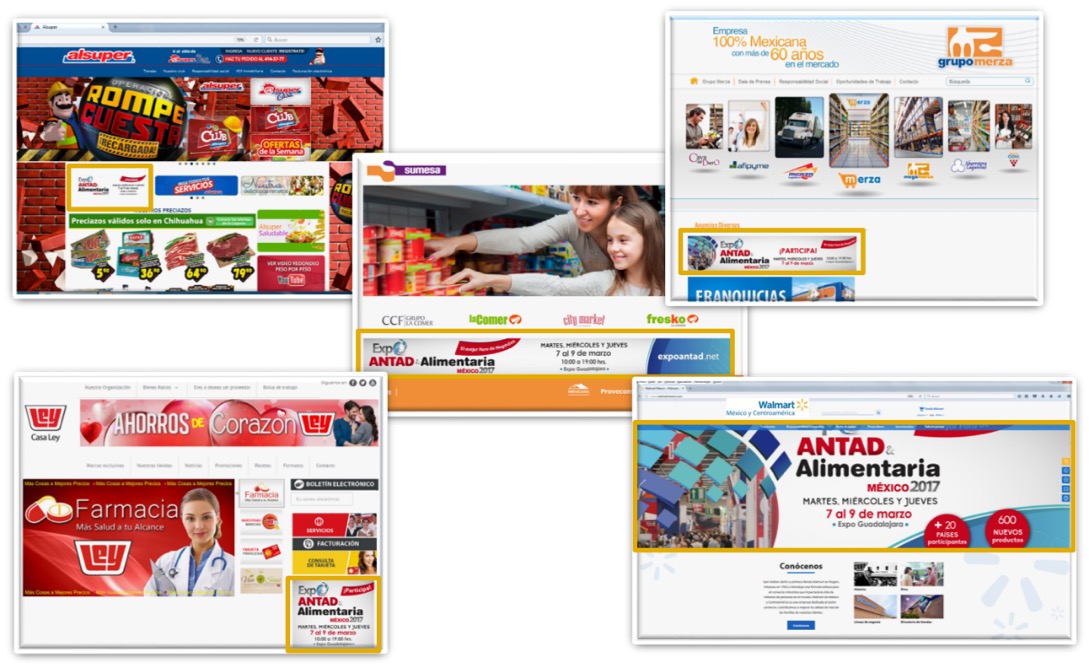 El Comité de Comunicación e Imagen, apoya en la difusión de EXPO ANTAD & Alimentaria México 2017, colocaron en el portal de la cadena un banner con la liga a la página del evento.